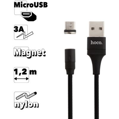 Кабель с магнитной насадкой HOCO U76 Fresh (USB Type A (male) - USB Type micro-B (male), 1.2 м, черный, micro USB - магнитная вставка, 2,4А, нейлонова